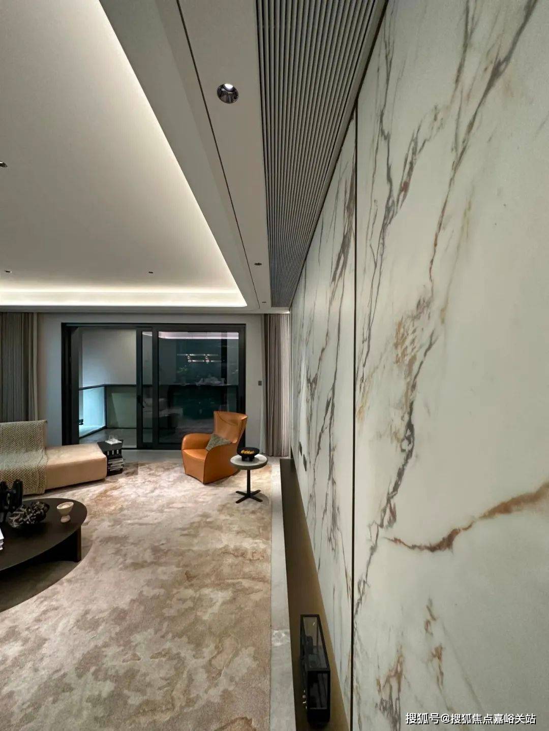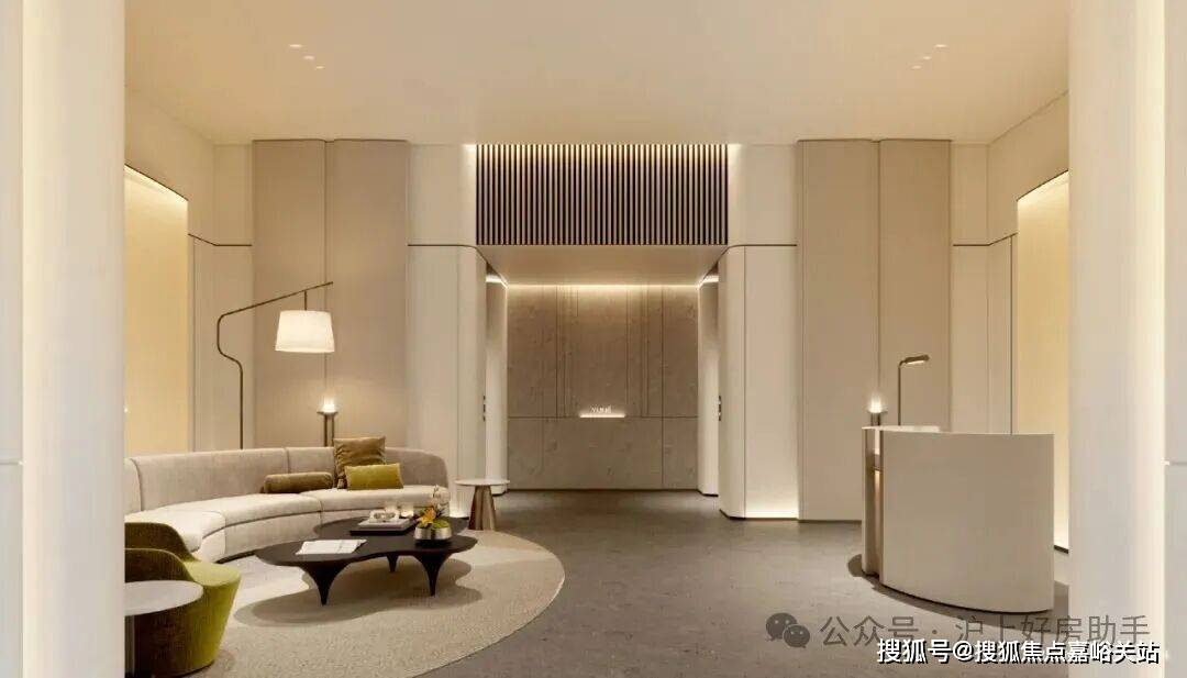 比起中规中矩的直线,弧形施工工艺更复杂、造价更高,却多了几分灵动轻盈!这种弧形的元素不只是在样板间里,在售楼处也能经常看到,比如电梯厅。