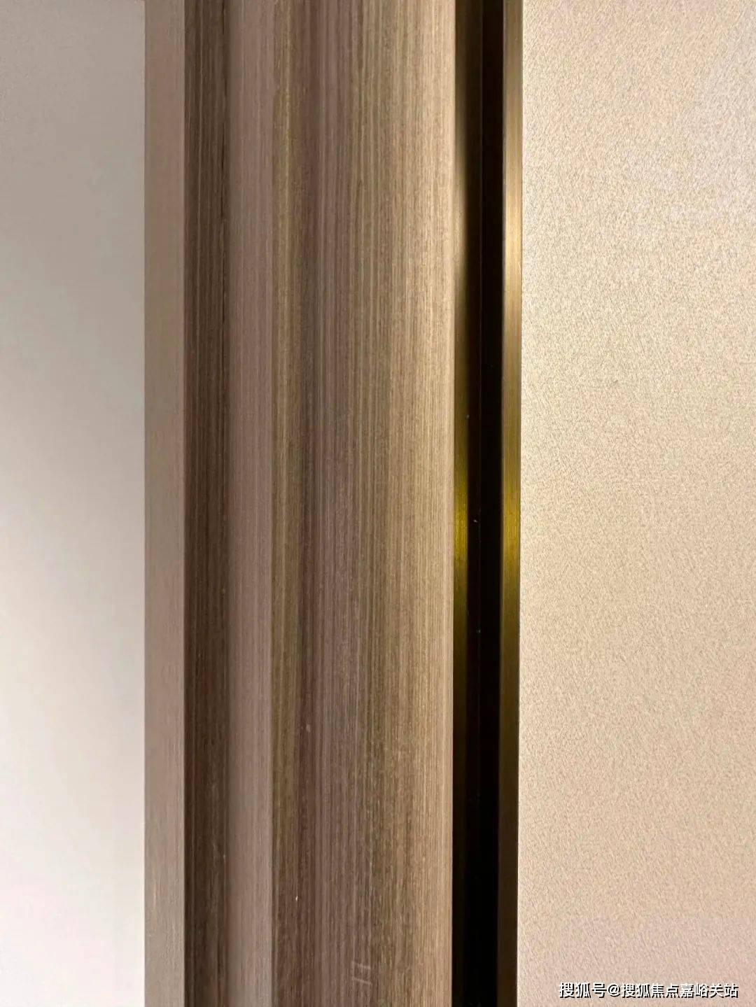 而且,门套做了弧形设计后,还叠加了金属线与墙纸做了分割,加强隔断界限感,提升室内家居精致度~